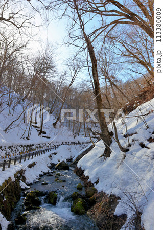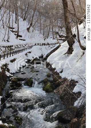 白糸の滝 雪道 長野県軽井沢 北軽井沢