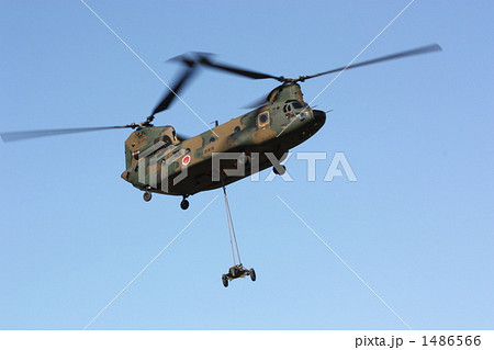 兵器輸送中の輸送ヘリコプターチヌークCH-47J