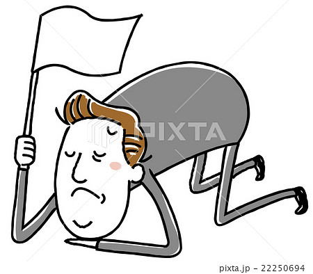 イラスト素材:中年ビジネスマン 白旗 降参 ギブアップ
