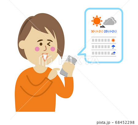 スマホで天気アプリを使う女性のイラストイメージ