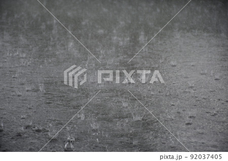 降雨イメージ 激しく降る雨粒と 光る水溜まり