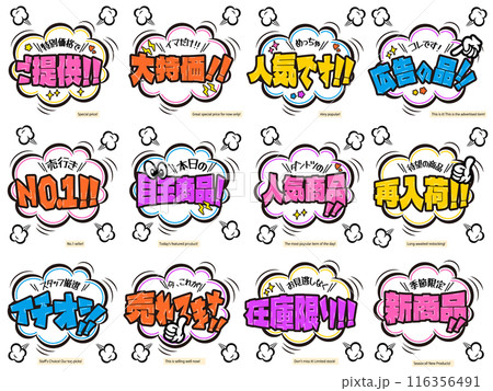 シンプルな販促用吹き出しセット