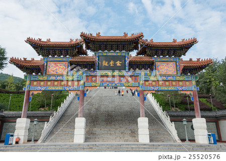中国 陝西省 咸陽市 大佛寺の山門と境内
