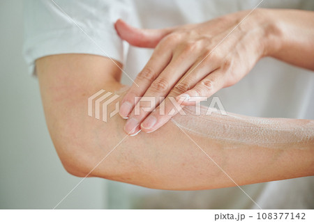 腕のスキンケアをする女性 ハンドケア ボディケア