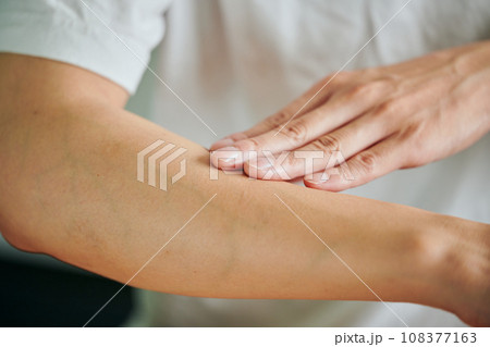 腕を触る女性のパーツカット