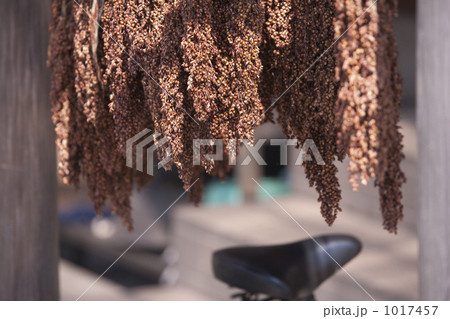 雨具 傘を自転車にひっかけて干している庭先 住宅街