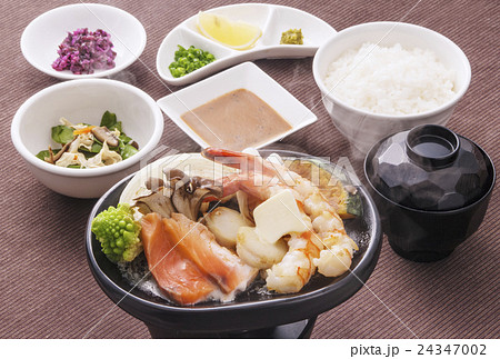 アツアツの海鮮焼き 陶板焼き料理 海鮮料理 イメージ素材