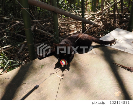 壊れたおもちゃで楽しく遊ぶ可愛いネコ