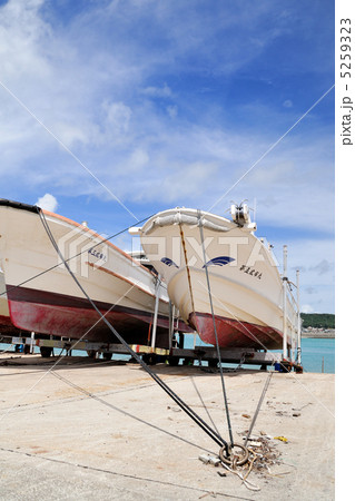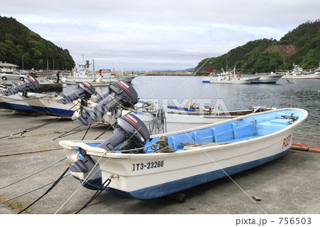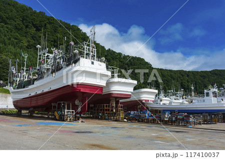 漁港に陸揚げされた漁船 漁港の風景