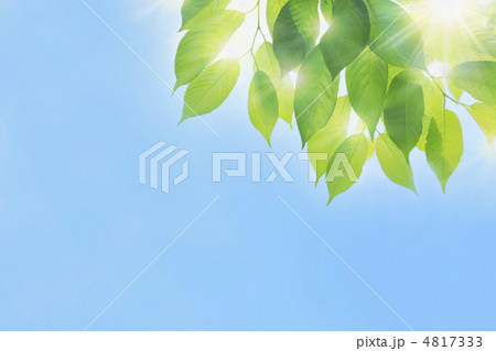 陽射しを浴びる青葉と快晴の青空 b-1