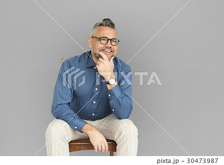 Casual Caucasian Man Sitting Smiling