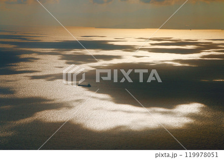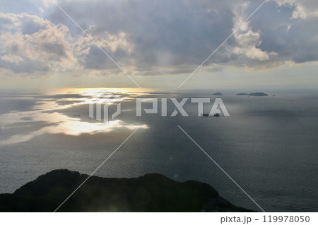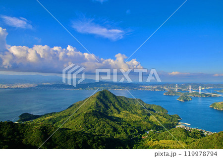 亀老山展望公園からの眺望・瀬戸内海と船・朝日(愛媛県・今治市)