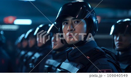 日本の機動隊の男性イメージ「AI生成画像」