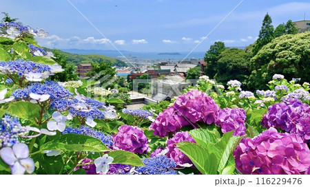 渥美半島、三河湾、満開の形原温泉あじさいの里の眺望〈愛知県蒲郡市〉