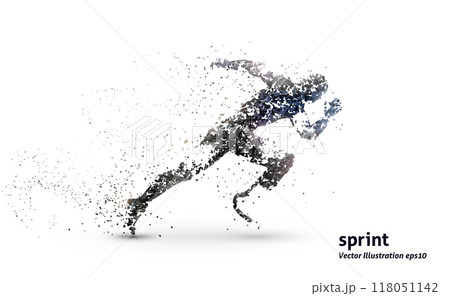 点描画風の車椅子ランナーのシルエット、ベクターイラストレーション