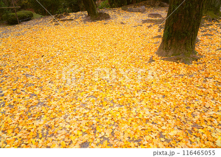 京都市北区岩戸落葉神社で晩秋の黄色に色づいたイチョウを撮影