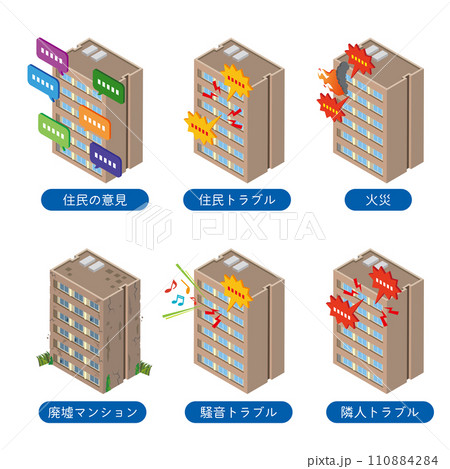 マンショントラブルのイラストセット