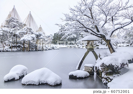 金沢・兼六園の雁行橋、苔むした石灯籠と歴史を感じさせる石畳が調和する庭園美