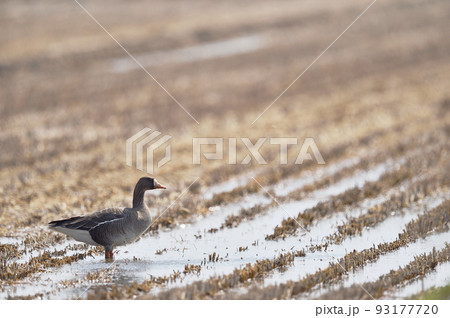 宮城県 凍結した伊豆沼のハクチョウとマガンの群れ