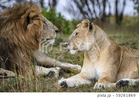 雄と雌のライオンの画像素材(写真・イラスト) 1ページ目