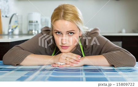 Sad woman sitting at kitchen