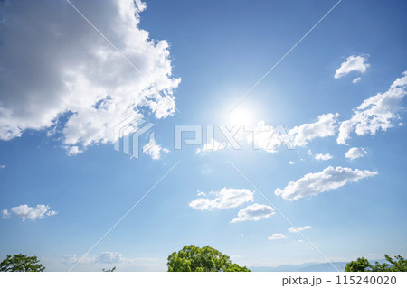 夏の雲と木立と太陽