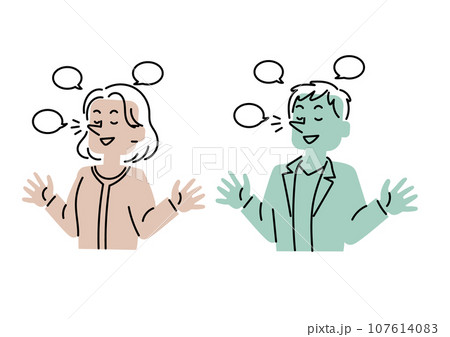 得意げに自慢をする男女のイラストセット