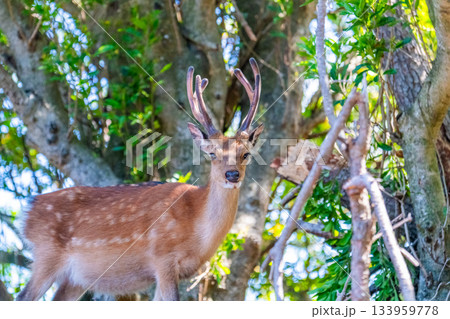 ヤクシカの雄 くつろぐ 世界自然遺産屋久島(春
