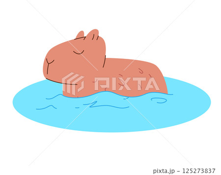 Capybara capibara relaxed in water cute vector flat illustration sticker cartoon character