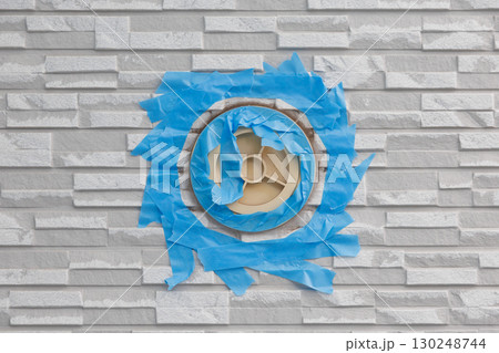 シール工事の換気フードをマスキング