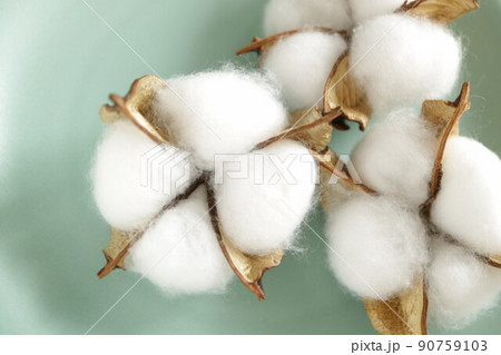 コットンフラワー 綿花 緑背景 無人