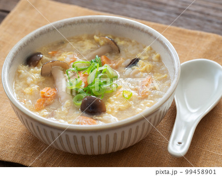 鮭としめじの入った卵雑炊