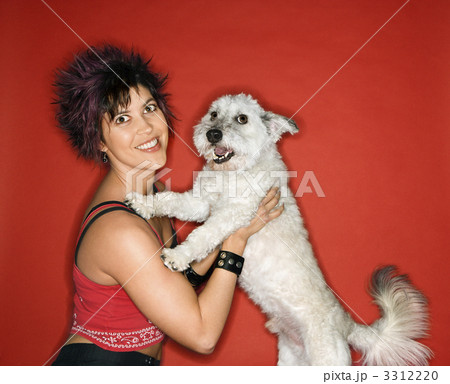 Young woman and white dog.