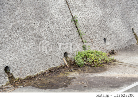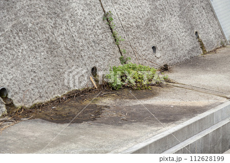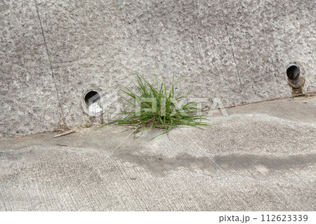 水抜き穴から生える雑草 コンクリート壁
