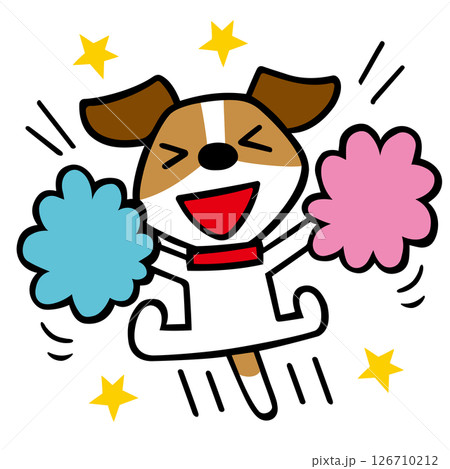 ジャックラッセルテリア犬キャラクター ポンポンで応援ポーズ