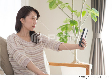 老眼鏡・メガネを掛けてスマホを操作する男性