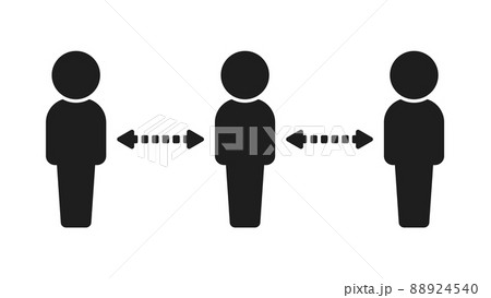 矢印と離れて立っている3人の人物のアイコン - ソーシャルディスタンス・感染予防のイメージ素材