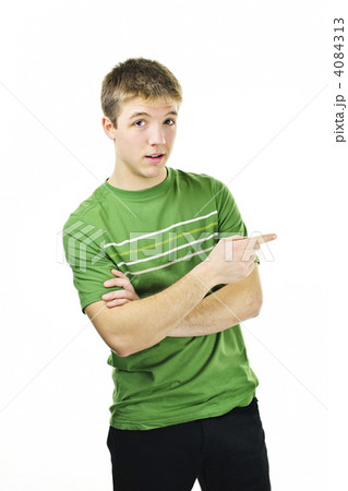 Young man pointing to the side