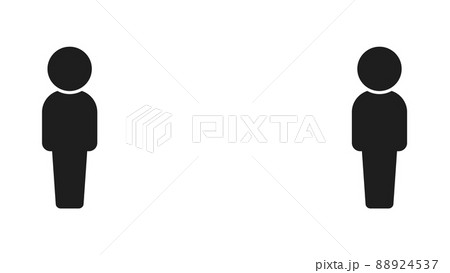 離れて立っている2人の人物のアイコン - ソーシャルディスタンス・感染予防のイメージ素材