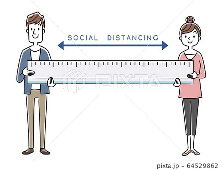 人物:男性 女性 ソーシャルディスタンス 2m 距離をとるイラスト