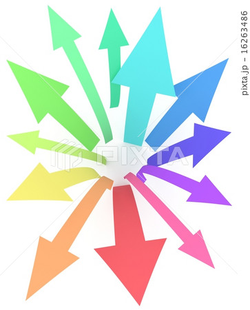 様々な形の集中・拡散・回転する矢印のベクターイラストセット