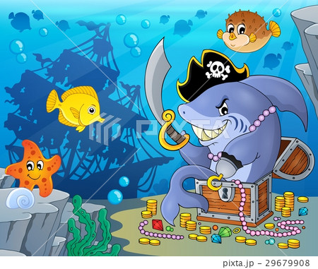 Pirate shark with treasure theme 2