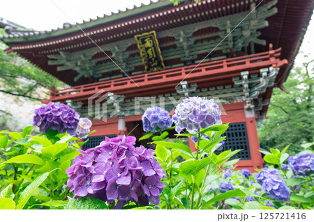 お寺を彩るアジサイの花。「岡山県真庭市・花の山寺 普門寺」