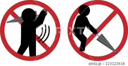 傘でゴルフの練習禁止をイメージしたアイコン素材セット