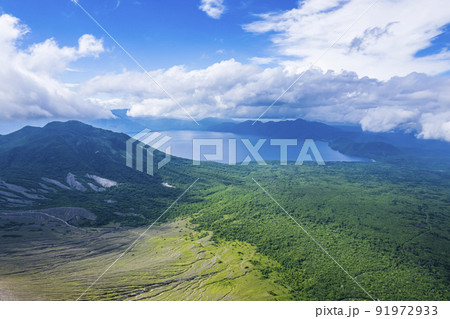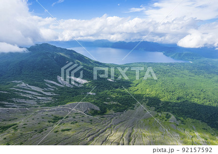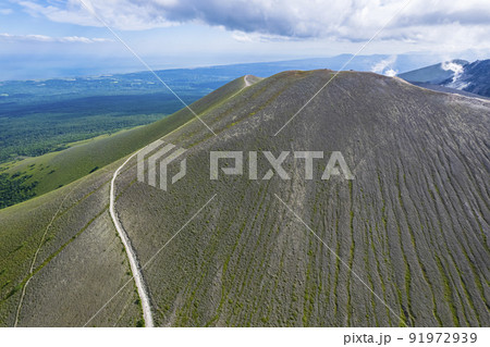 ガリ 侵食によってできた特徴的な山肌(樽前山 空撮)