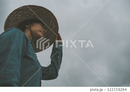 雨雲と若い女性