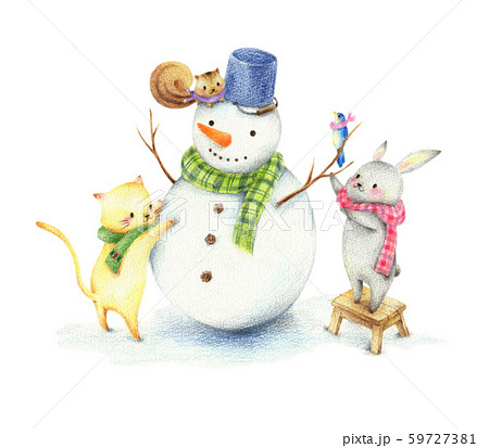 雪だるまを作る動物