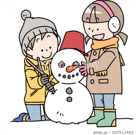 雪だるまを作る男女の子供