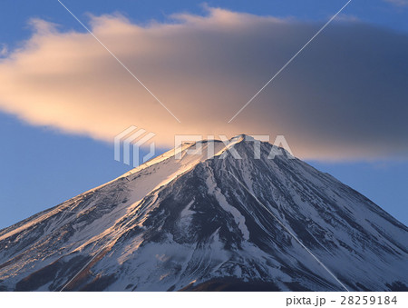 雲と富士・雲を背にした冠雪富士・湖前景横位置