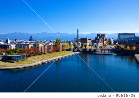 10月(秋) 呉羽山の桜の広場付近から見た富山市内と立山連峰 富山県